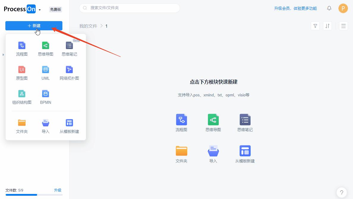 在ProcessOn中,可以轻松创建各种类型的文件,并根据自己的需求进行编辑与管理。以下是新建文件的几种方式: