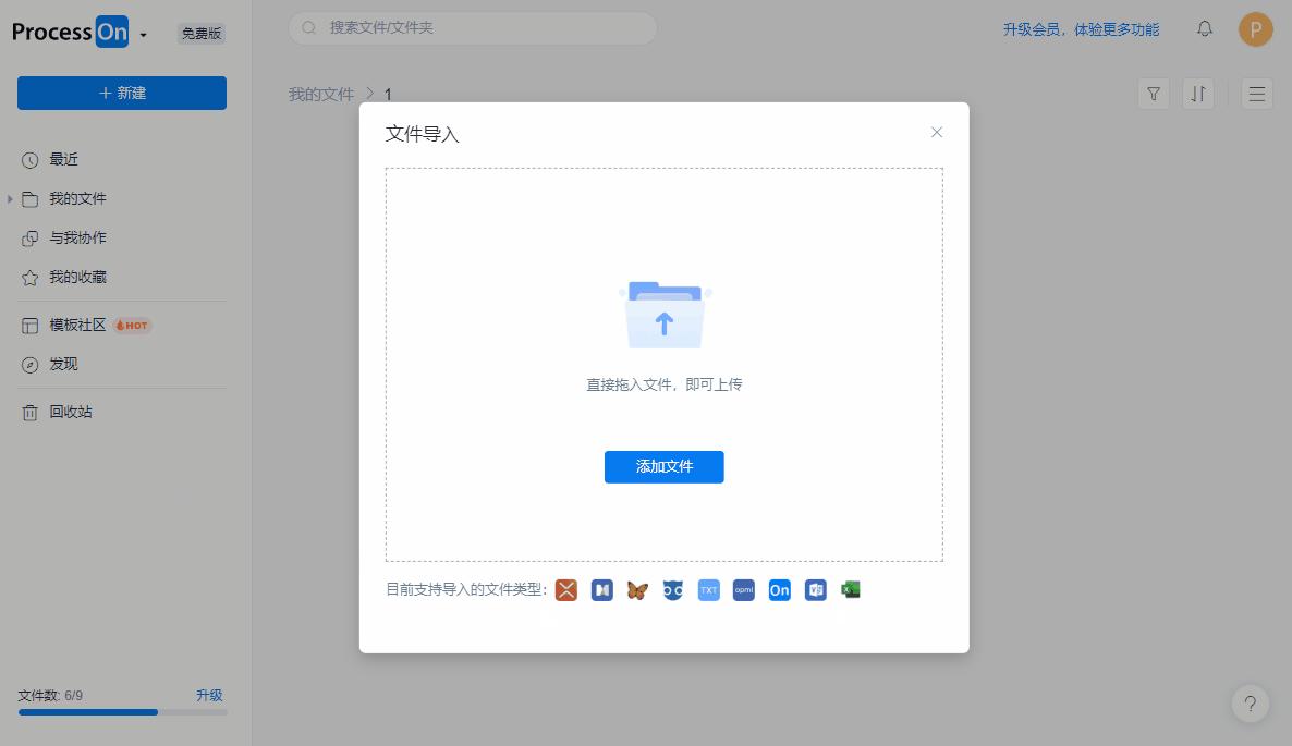 如果已有本地文件,ProcessOn支持将其导入平台,进行进一步编辑和协作。支持的导入格式包括: