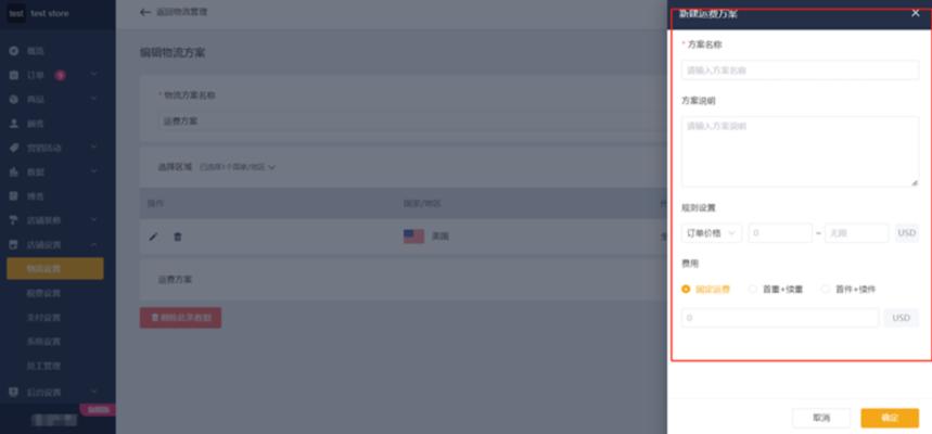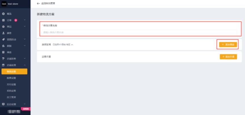 2、输入物流方案名称。请注意,该名称不会对客户展示,因此可以根据个人喜好进行命名。