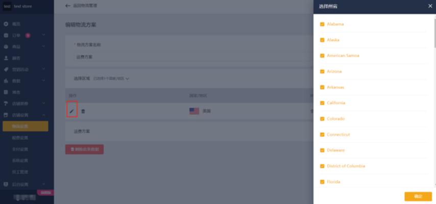 2、在选择了国家后,可以进一步选择具体配送方案的州、省或其他地区,以便更精准地设定运输范围。