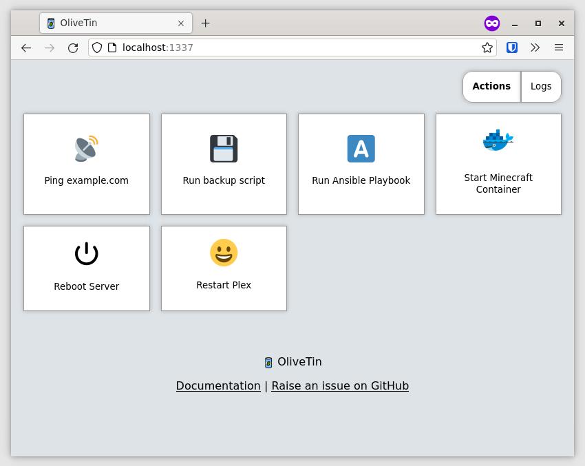OliveTin 能执行任何 bash 脚本能做到的操作,甚至更多。你可以使用 CLI 命令、运行基本脚本或重启服务等。