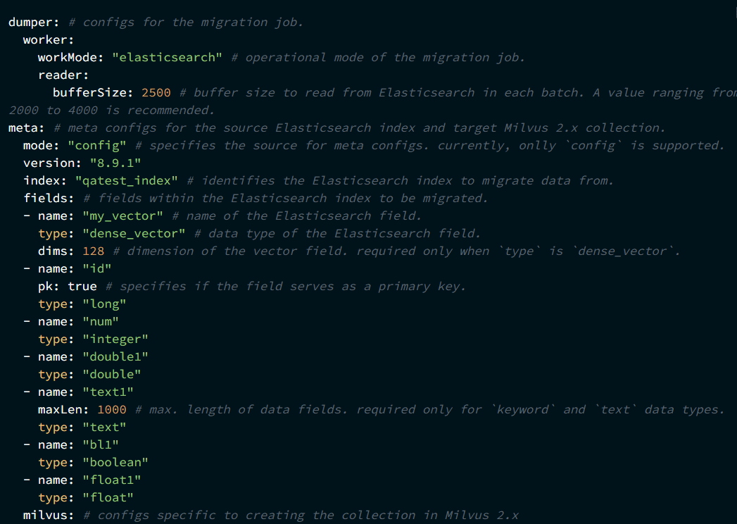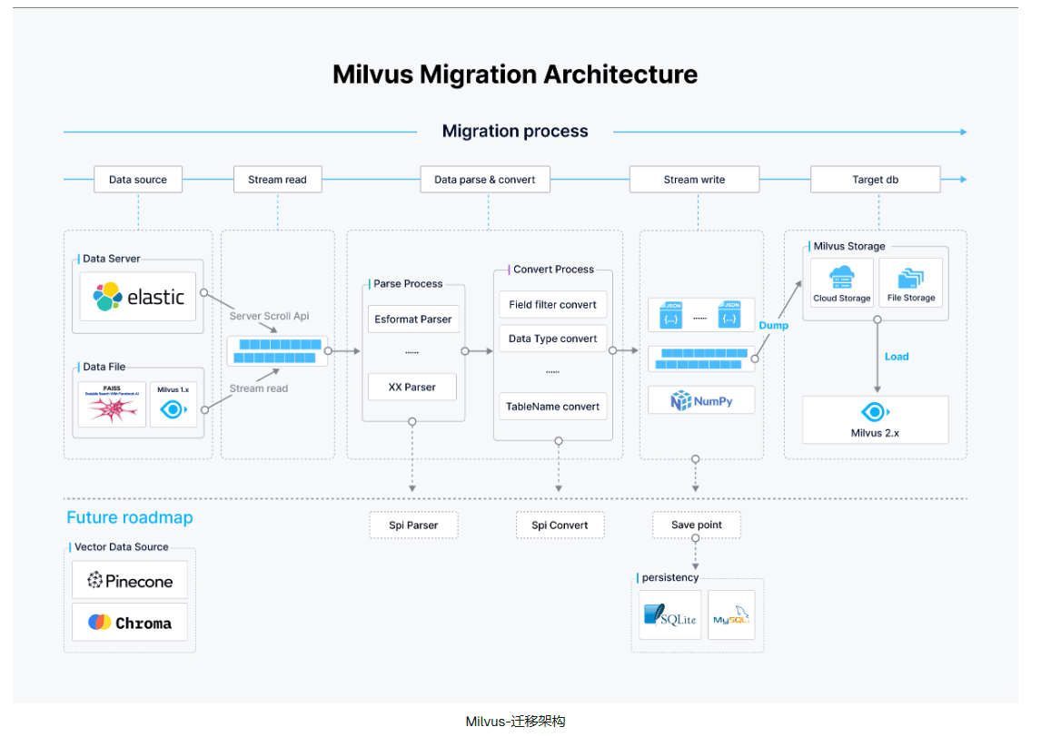1、从 Elasticsearch 迁移到 Milvus 2.x:使用户能够将 Elasticsearch 环境中的数据迁移到 Milvus,享受后者优化的向量搜索功能。