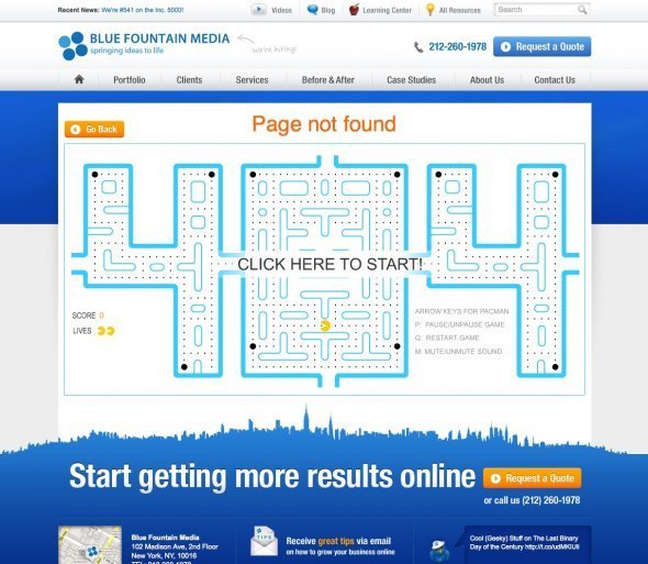 在有的404页面上还能玩吃豆人呢。