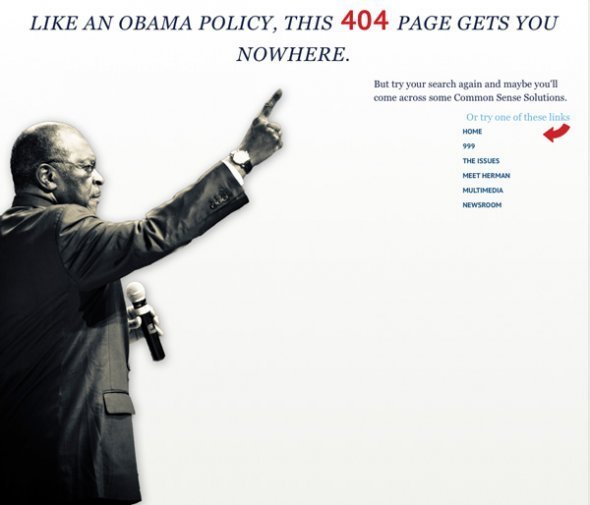 还记得去年美国大选的候选人Herman Cain么,他对奥巴马的经典抨击居然也适用于404页面:“这个页面和奥巴马政策一样,一定会让你晕头转向。”