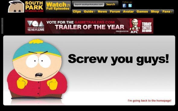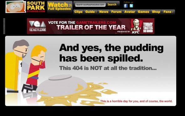 动画《南方公园》官网上的搞笑404页面层出不穷。