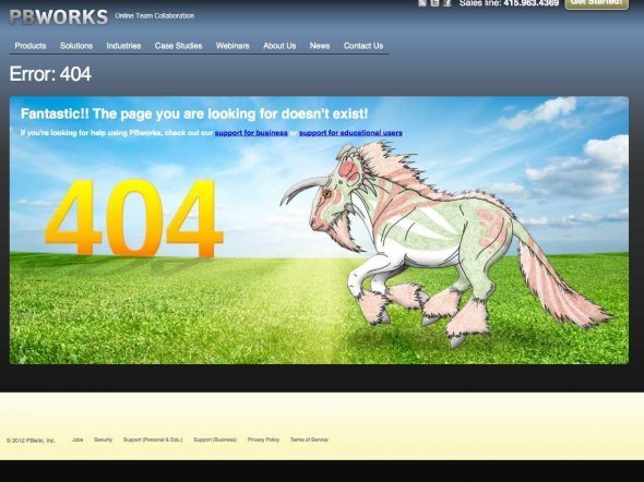 PBWorks电子维基的404是以独角兽为主题的。