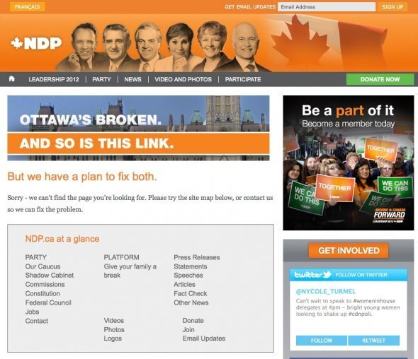 加拿大一个政治网站的404页面。