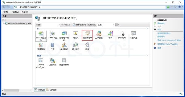 选择需要制作证书的服务器,选择服务器证书选项,进入服务器证书界面: