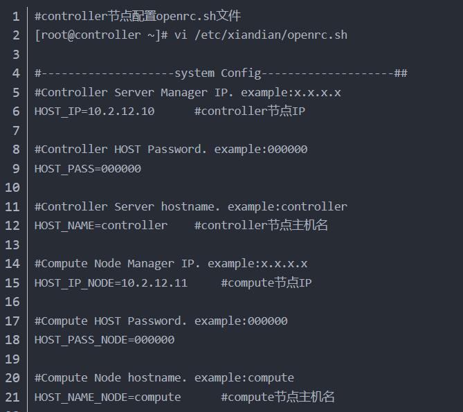 在配置完成后,可以将控制节点的 /etc/xiandian/openrc.sh 文件传输至计算节点: