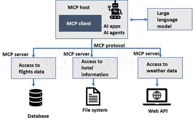 近期有关“MCP”的关键词在业界内掀起了一波“热潮”,那么MCP到底是什么呢?MCP是由Anthropic公司开发的一项开源协议,主要将AI模型连接到大部分数据源或工具的标准化方式。MCP采用client-server架构(如下图所示),主要帮助开发者通过轻量级的MCP Servers来公开其数据,同时构建作为MCP Clients的AI应用程序,且客户端可连接到服务器。