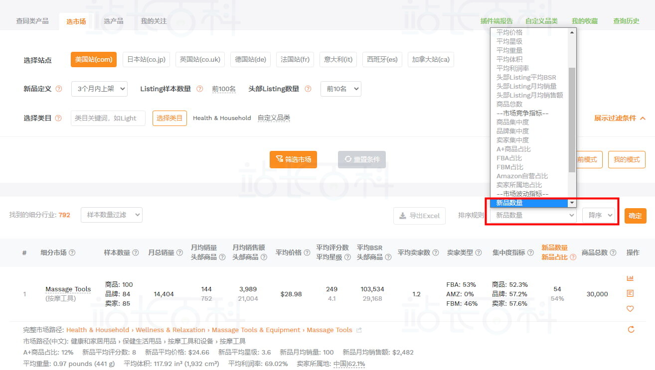二、卖家精灵选市场技巧:加过滤条件