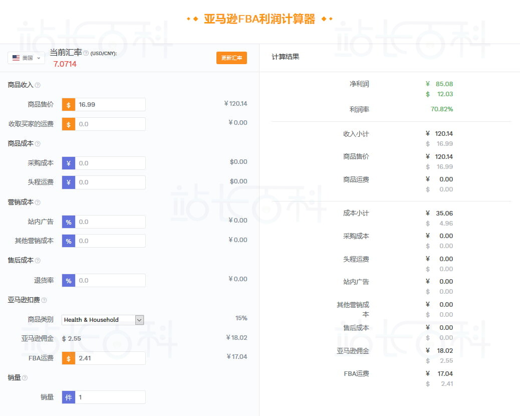 打开卖家精灵右侧利润计算器,输入采购价、运费、亚马逊佣金等,秒算利润率;