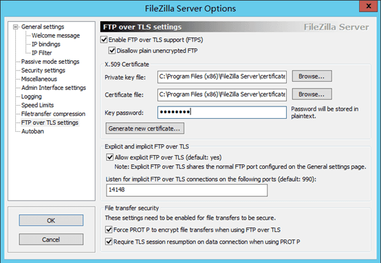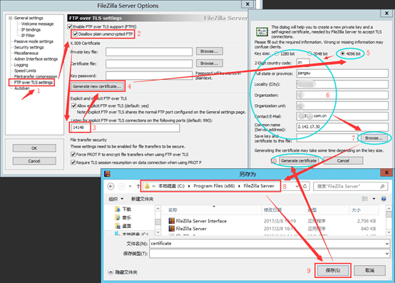 配置TLS加密设置,包含证书的生成步骤,其中填写的信息可随意。