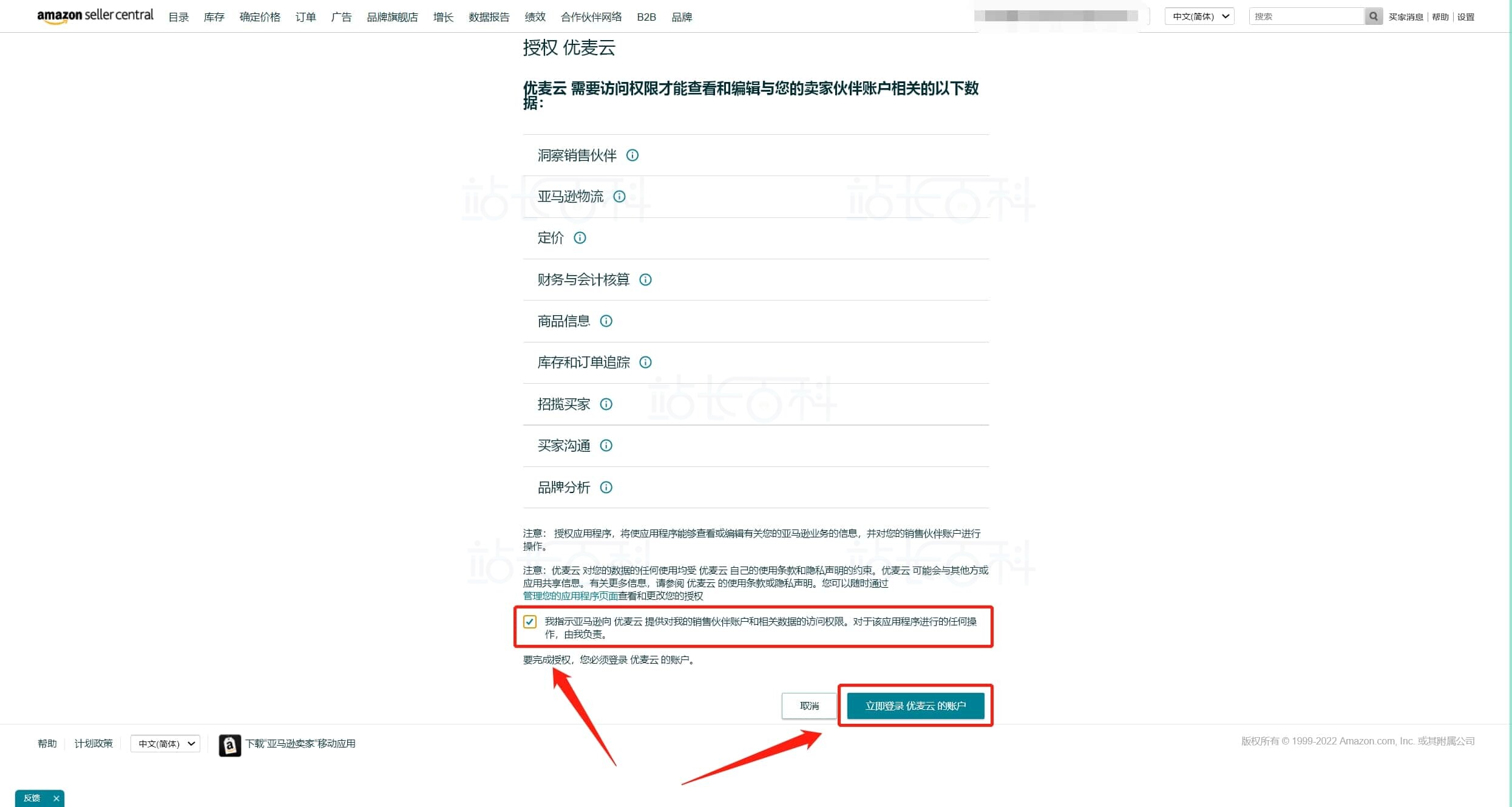 注意:如果您的卖家账号未登录,需要您先登录,之后再跳转至授权页面。