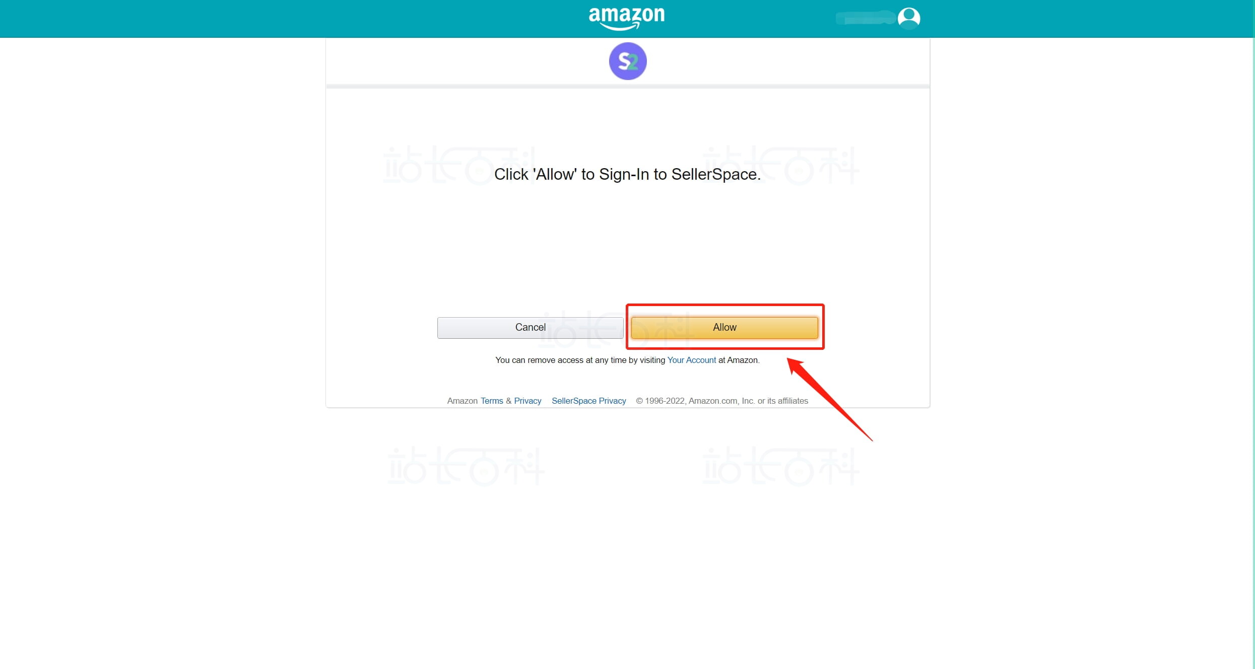 7、亚马逊的广告授权页面,点击【允许】,一键搞定!如果点击【取消】,则是取消授权。