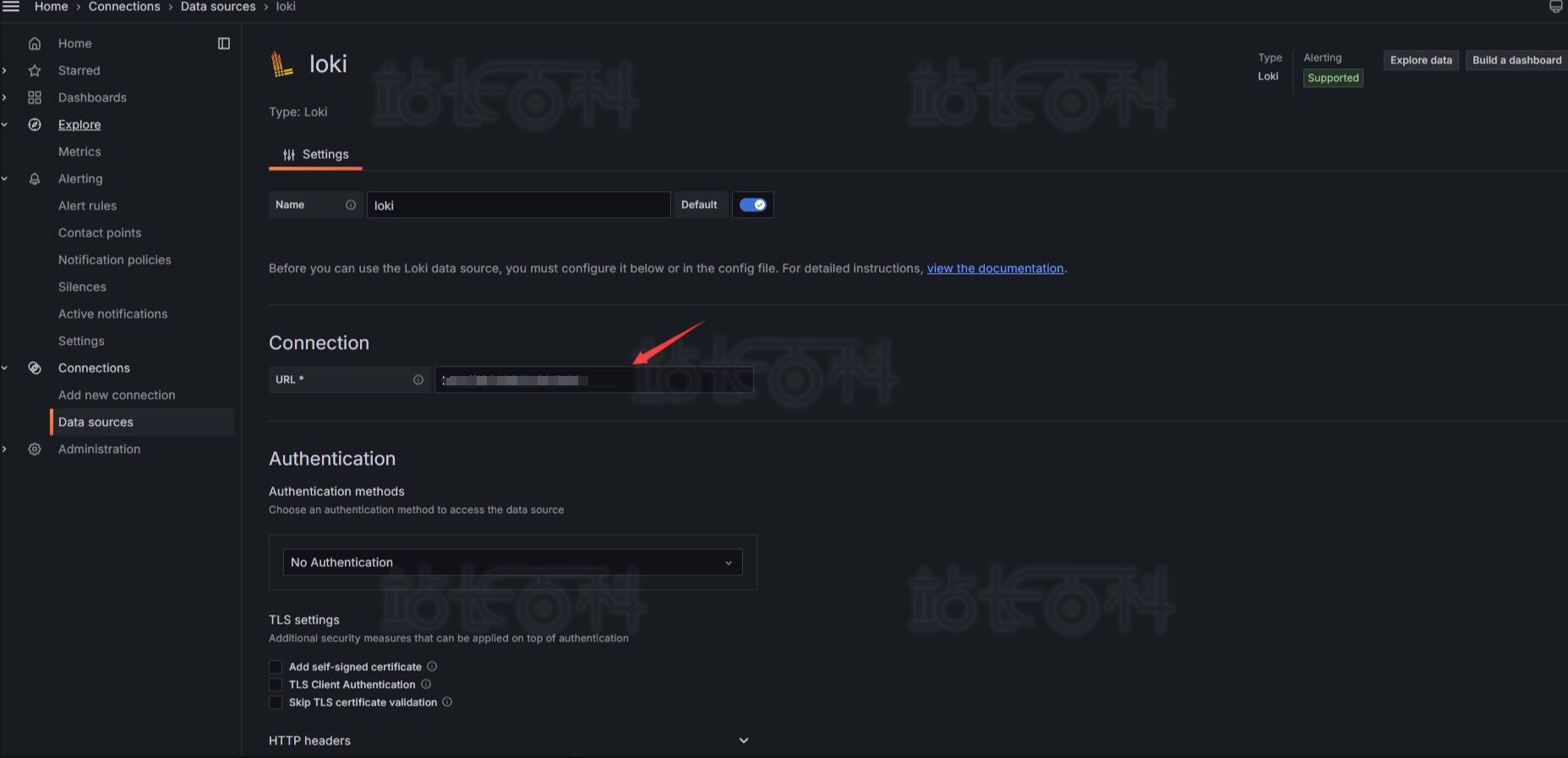 配置连接信息:在 URL 字段输入 Loki 服务地址 http://61.191.20.25:3100