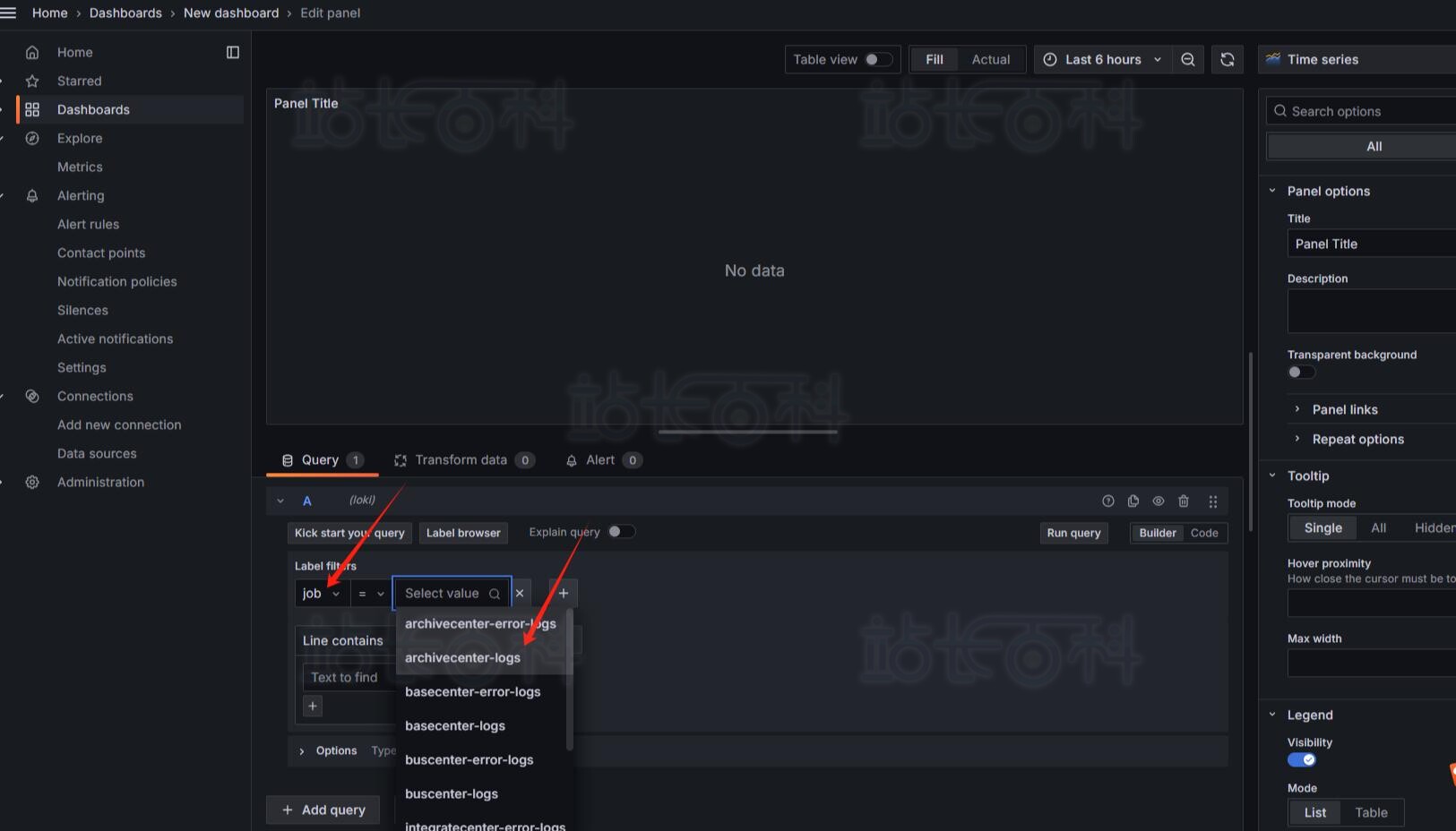 选择数据源:在面板设置中选择 Loki 作为数据源