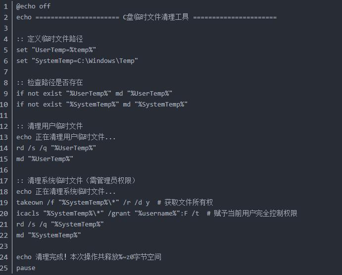 写一个简单的脚本(带错误处理),比如保存为 CleanTemp.bat: