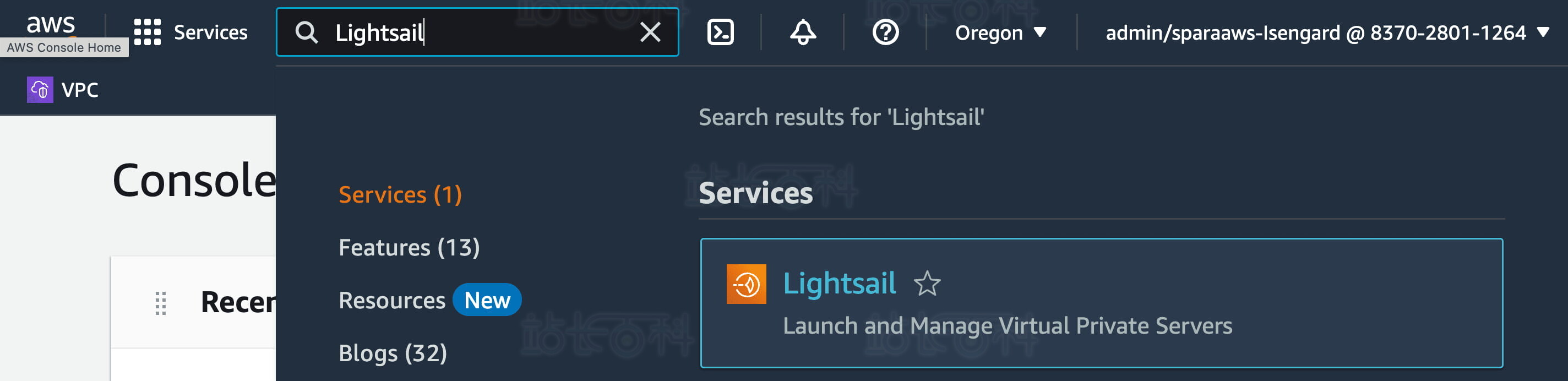 通过上方链接访问AWS官网,注册登录后使用搜索栏查找Amazon Lightsail。