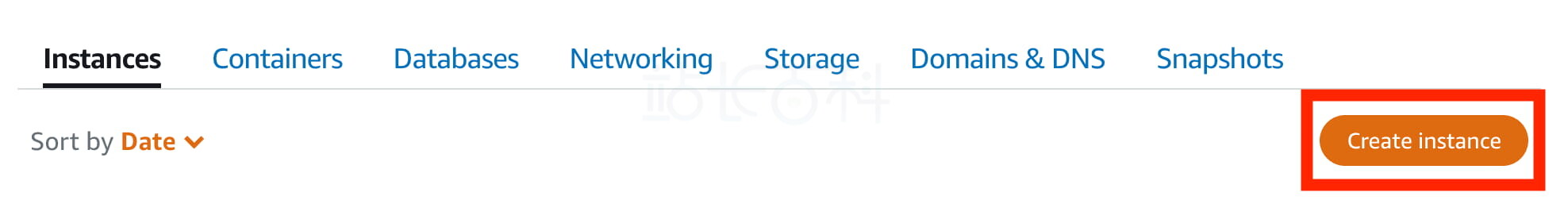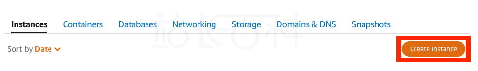 Amazon Lightsail菜单显示Instances(实例)(即虚拟专用服务器)选项。选择Instances(实例)后点击Create instance(创建实例)。