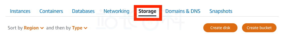 在Lightsail菜单上选择Storage(存储),点击三个垂直点。