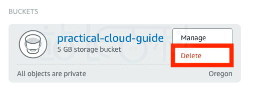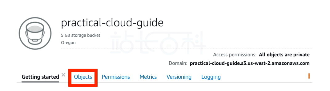 然后会看到practical-cloud-guide存储桶的菜单页面,选择Objects(对象)。