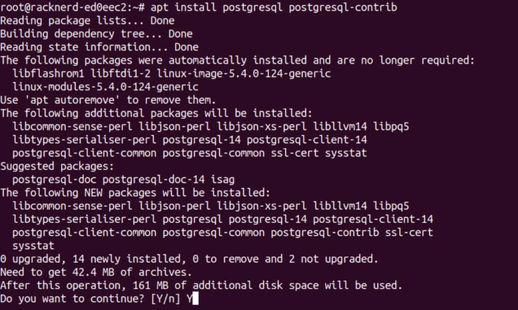 安装PostgreSQL主程序和配套工具(postgresql-contrib 包含一些实用的扩展功能):