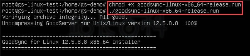 下载完成后,先通过以下命令为安装程序赋予执行权限(将 “name_of_goodsync_installer.run” 替换为实际下载的安装程序文件名,如 “goodsync-linux-x86_64-release.run”):