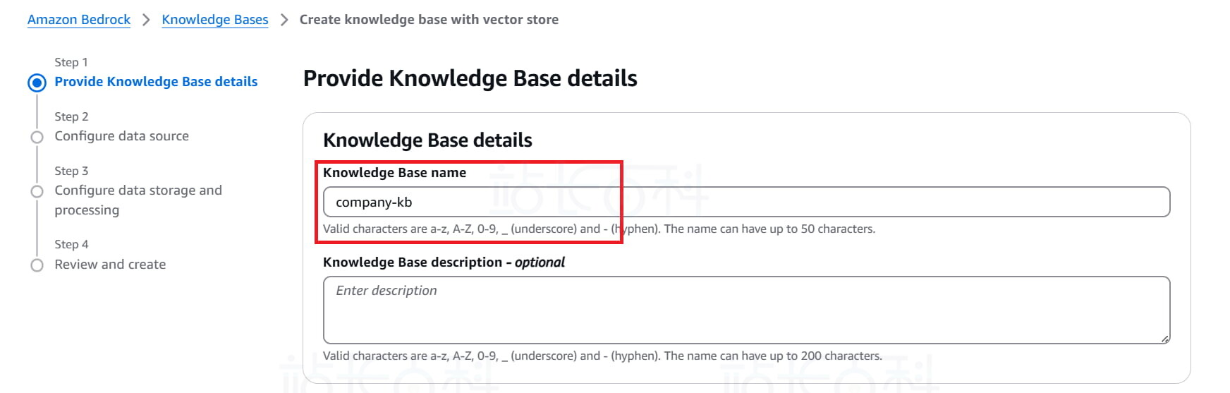 3、自定义知识库名称 Knowledge Base Name:如 company – kb。