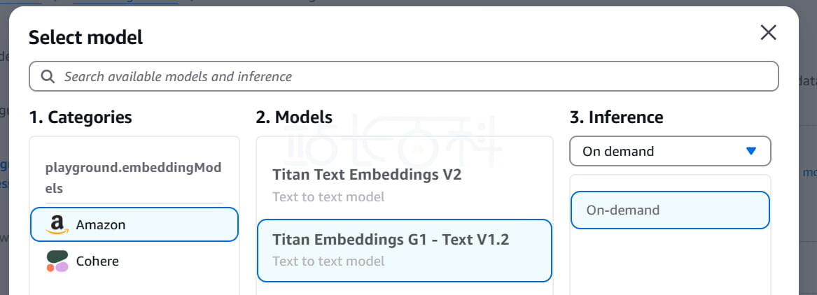 10、建议选择 Amazon Titan Embeddings(Bedrock 原生)。