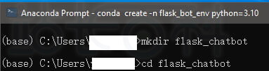 2、在 Anaconda Prompt 中输入以下代码,创建并进入项目文件夹: