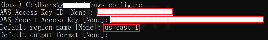 6、这里需要输入你的:AWS Access Key ID,AWS Secret Access Key,默认 Region。