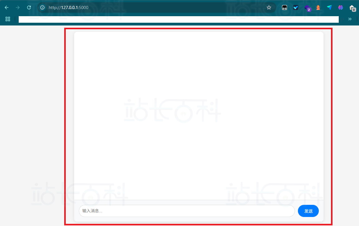 运行 app.py 启动 Flask 服务后,使用浏览器访问 http://127.0.0.1:5000/,可以加载出flask框架下的智能客服