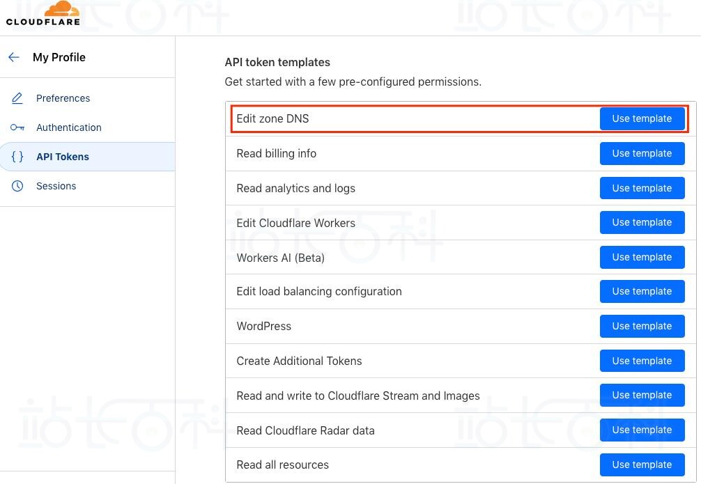 - API令牌或全局API密钥:需从Cloudflare的API令牌页面生成(具体生成步骤见下文)。