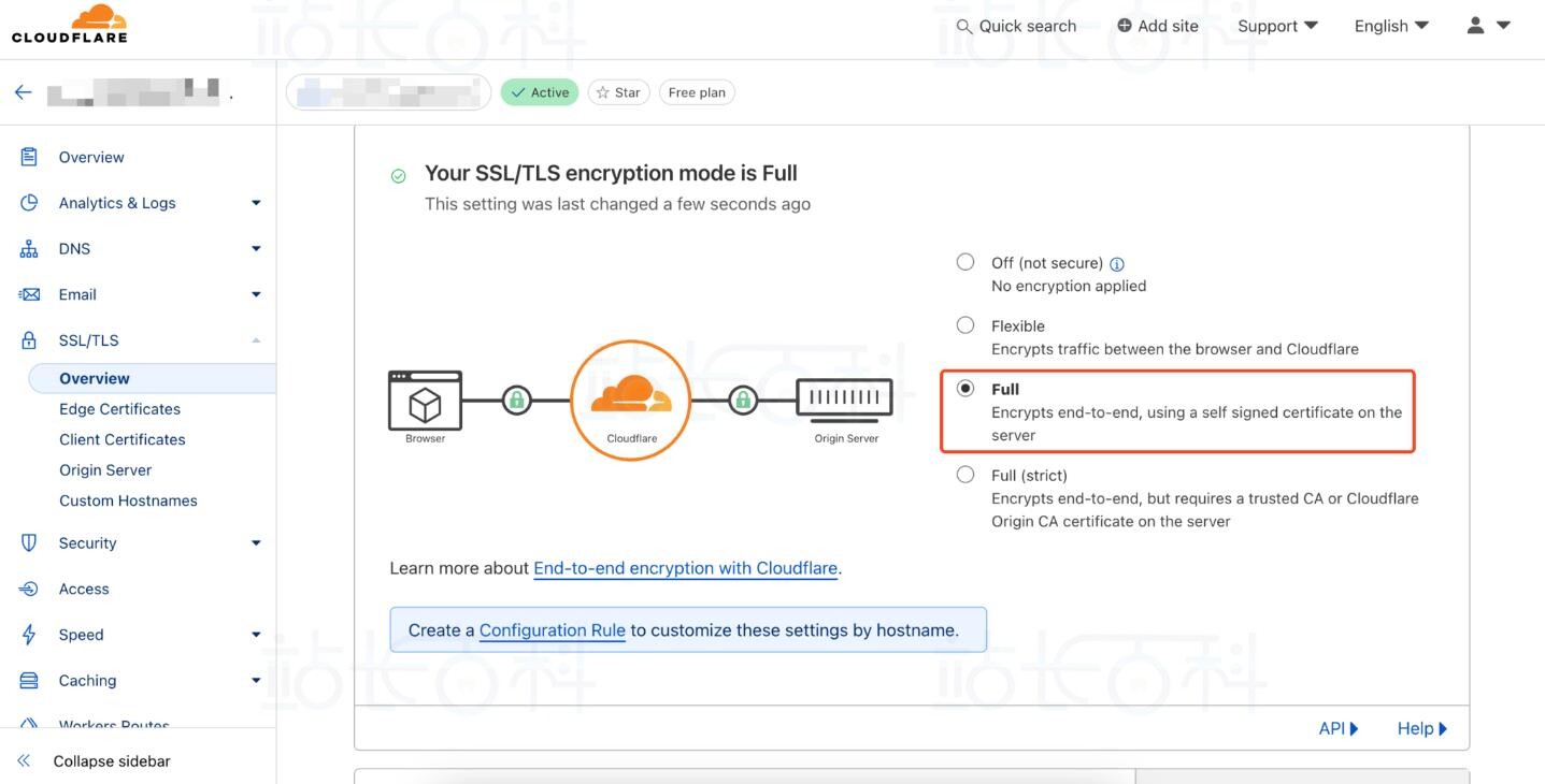为了防止出现频繁重定向,或“Err_too_many_redirects”(重定向次数过多)这类错误,需要将Cloudflare的SSL/TLS加密模式设置为“Full”。具体操作步骤: