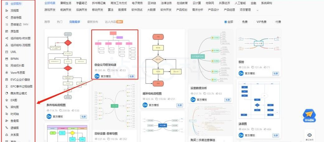 ProcessOn模板社区是创作者分享和发布专业模板的平台,支持流程图、思维导图等多种图形化表达方式。模板社区最常见的功能包括场景定制、图形模板、分类筛选、搜索模板等,下面请跟随站长百科一起来看看。