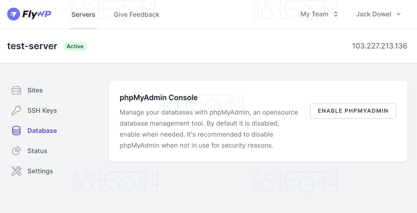 FlyWP数据库页面能直接访问数据库,还和phpMyAdmin集成。phpMyAdmin是一款常用的免费数据库管理工具,可以直接在FlyWP仪表板上通过它查看、编辑和管理MySQL数据库。下面是关于如何了解和使用FlyWP数据库页面的详细指南。