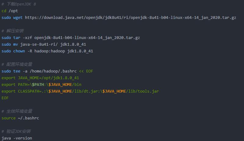 echo “export JAVA_HOME=/opt/jdk1.8.0_41” | sudo tee -a hadoop-env.sh