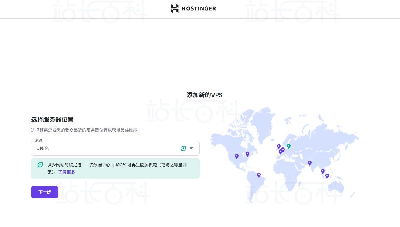 机房位置选择:Hostinger提供美国、巴西、法国、德国、立陶宛、印度等多个数据中心,根据你的客户群体分布位置选择。这里选择的是美国数据中心。