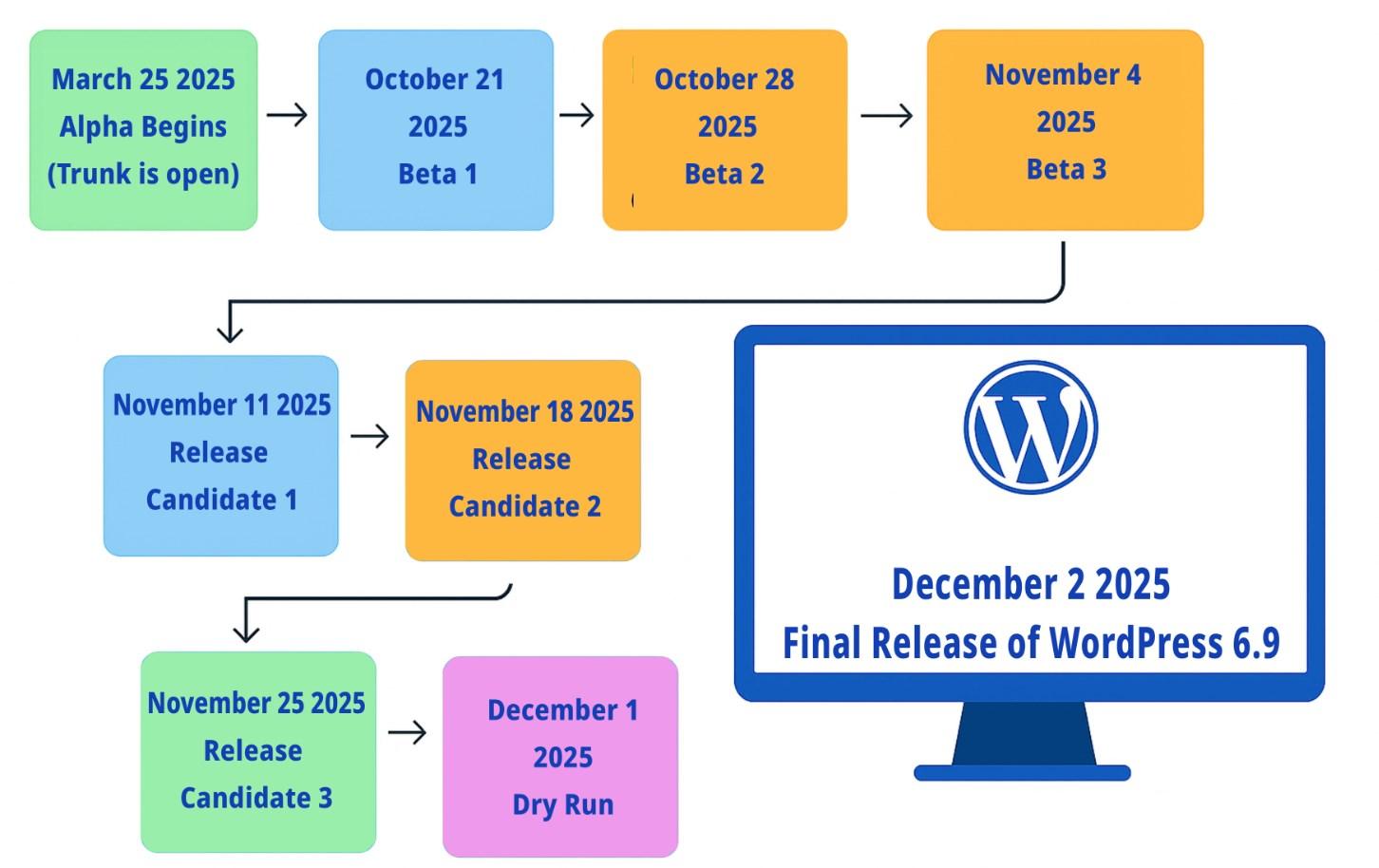 以下是核心开发团队公布的WordPress 6.9官方发布计划: