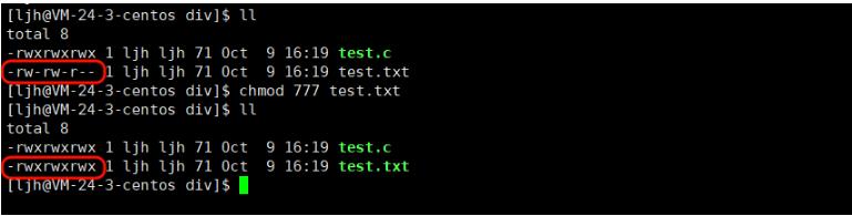 执行chmod 777 test.txt:把 txt 文件的所有者、所属组、其他用户权限都设为可读、可写、可执行。