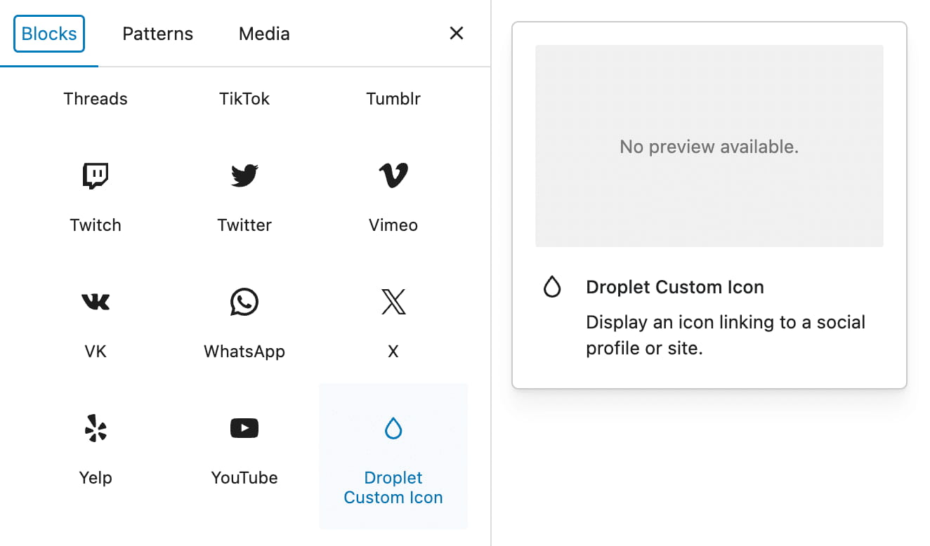 新增的 block_core_social_link_get_services 过滤器允许开发者使用区块变体为社交链接区块添加自定义链接图标。此新增功能为自定义社交链接区块提供了更多选项,并免去了核心管理大量服务列表的麻烦。
