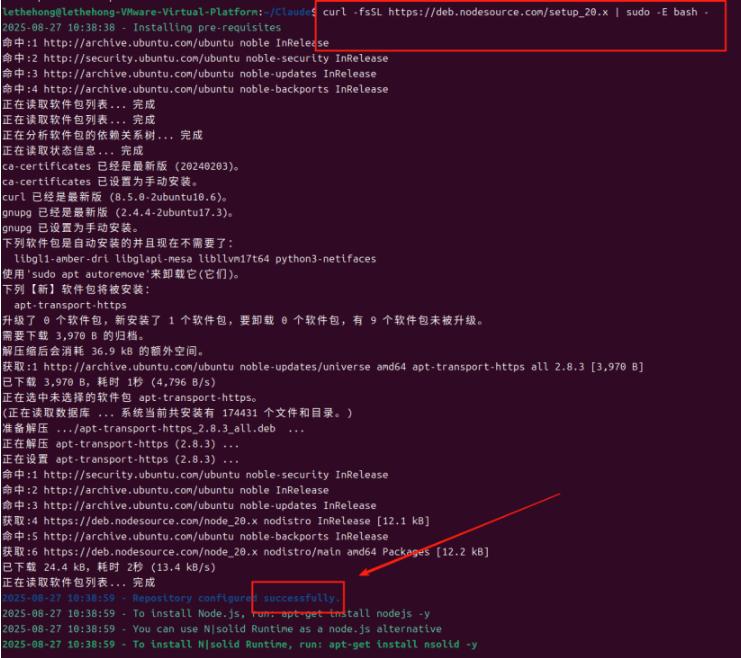 由于需要安装特定版本的 Node.js(20.x 系列),先添加 NodeSource 仓库: