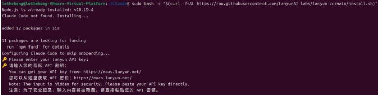 sudo bash -c “$(curl -fsSL https://raw.githubusercontent.com/LanyunAI-labs/lanyun-cc/main/install.sh)”