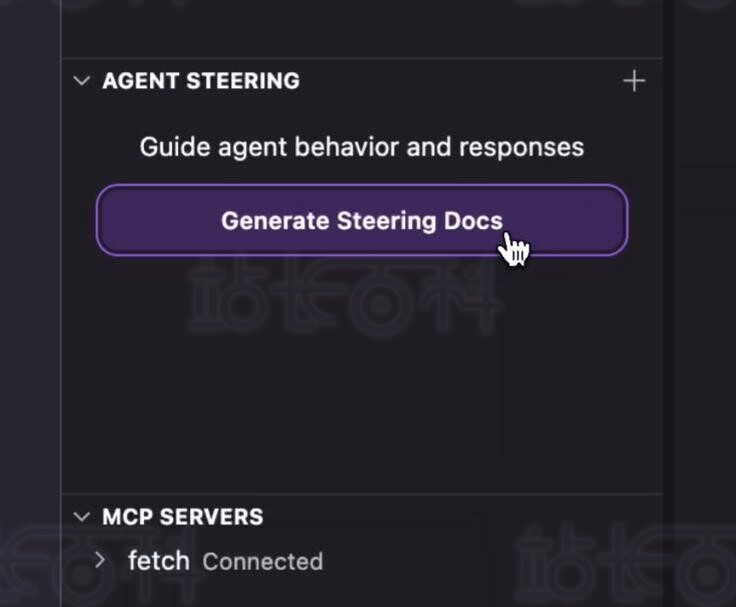 在Kiro面板中选择「生成引导文档」,Kiro会自动为你生成项目引导文档,文件将保存在 .kiro/steering/ 目录下,用于规范AI助手的工作逻辑,文档包含以下核心信息: