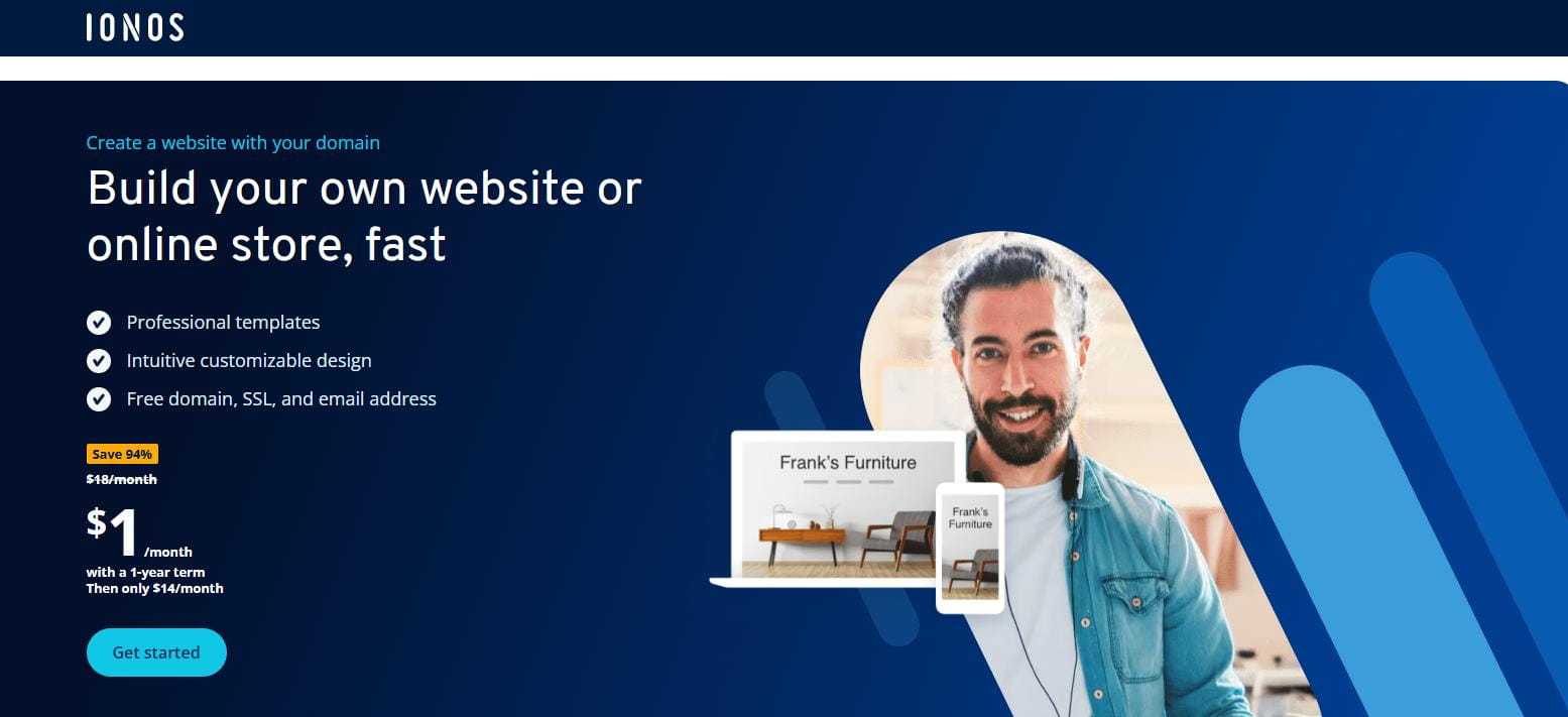 IONOS是一款简洁直观的工具,专注于核心设计元素,帮助你快速打造干净整洁、无多余繁杂功能的网站。它没有庞大的模板库和高级设计工具,而是提供预制区块——你只需将这些区块拖拽到对应位置,再进行自定义调整,就能满足需求。