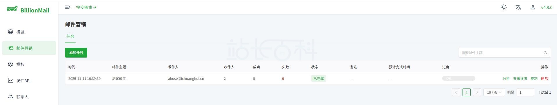 若想要测试BillionMail邮件服务器的达率和得分,可以使用“www.mail-tester.com”测试工具,发送后刷新mail-tester页面,若得分≥8/10,说明邮件进箱率良好;若得分低,根据提示优化。