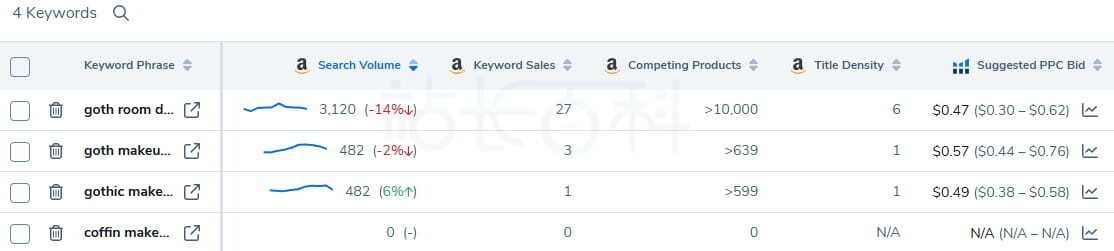 - 显示关键词短语、搜索量、销量、竞品和广告出价等数据;