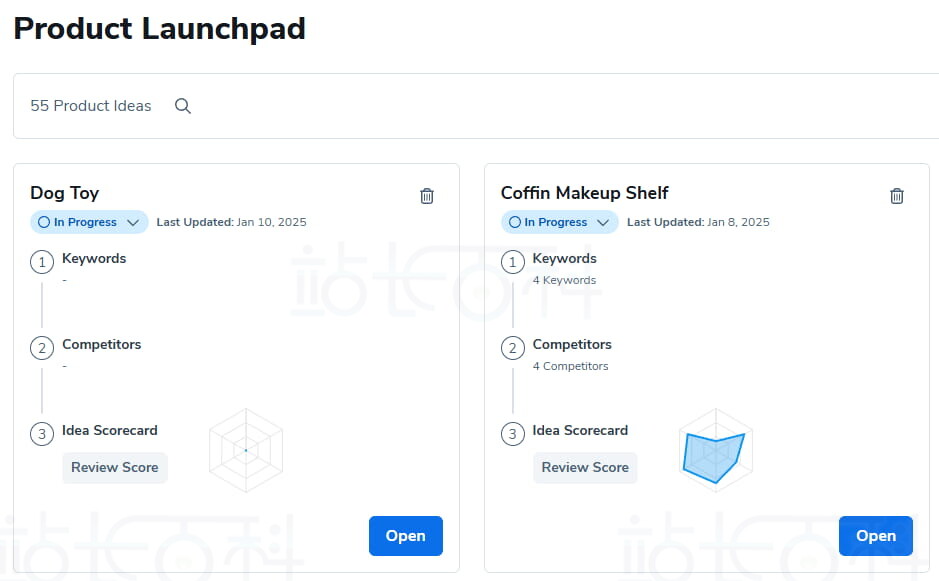 命名产品创意后,它将保存到Product Launchpad控制面板。点击创意上的“Open开”按钮即可进入下一步。