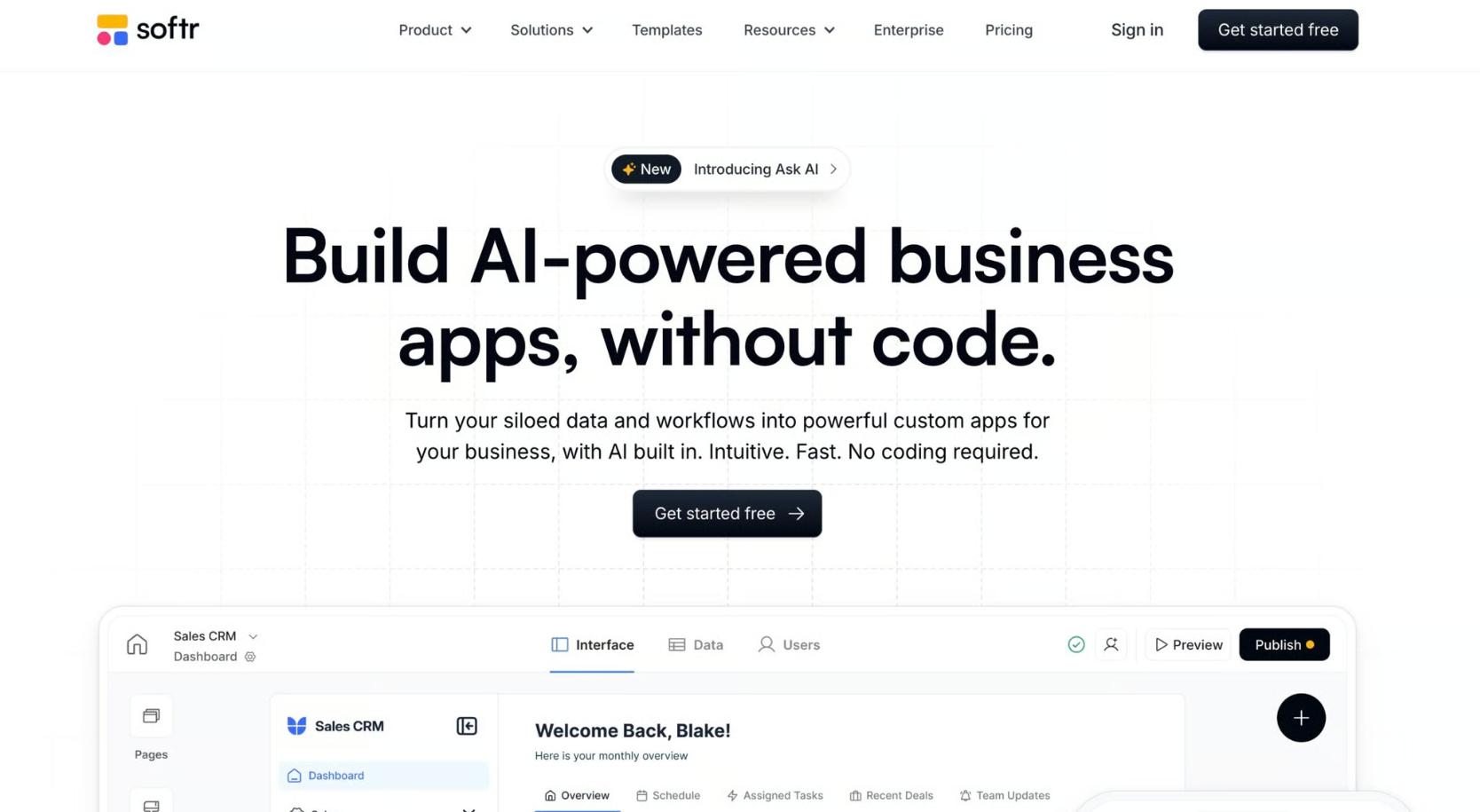 该平台提供100多个现成模板,满足常见的业务需求,例如客户门户、项目管理工具和会员目录。还可以使用Softr的AI助手,通过简单的英语描述需求来生成自定义应用程序。